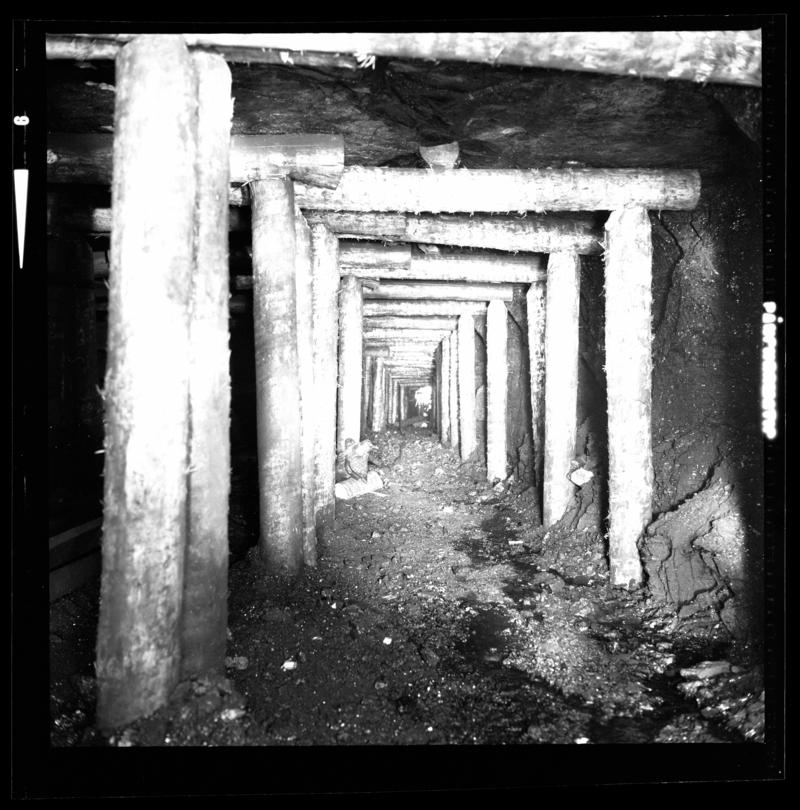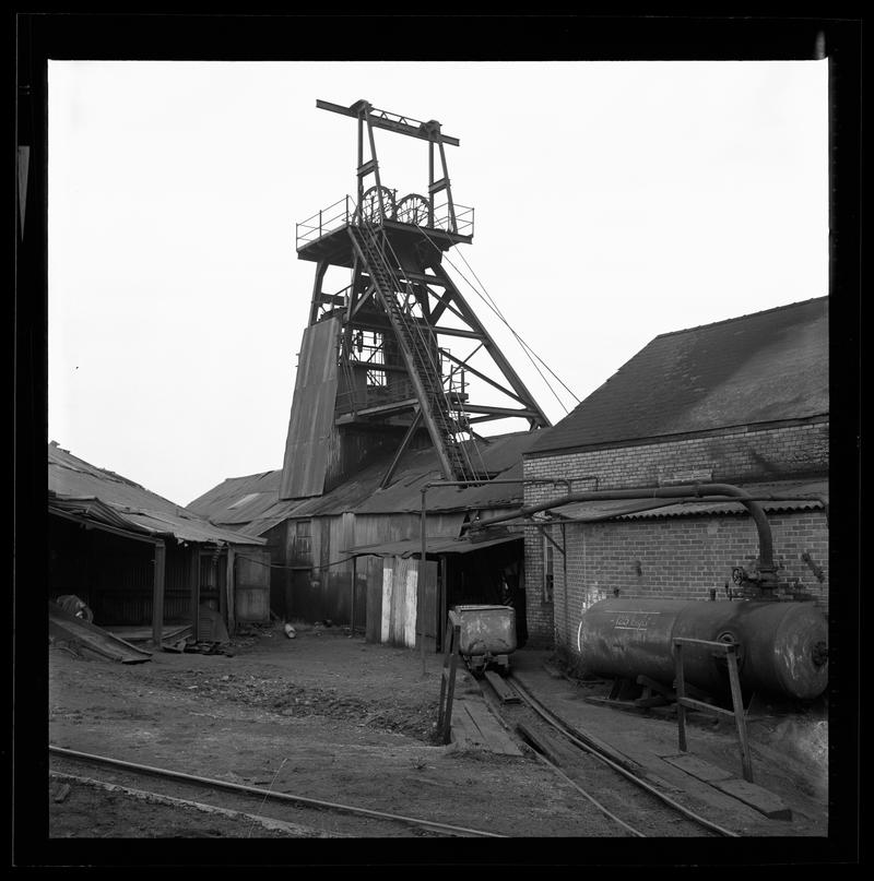 Photograph captioned 'Ferndale Colliery, Rhondda Fach. Out of demolition comes scrap where past usefulness is recognised in a bearing, a section, a shaft end.' Mounted on card. Made for the exhibition RECORDING WALES 3 in 1970/1971.