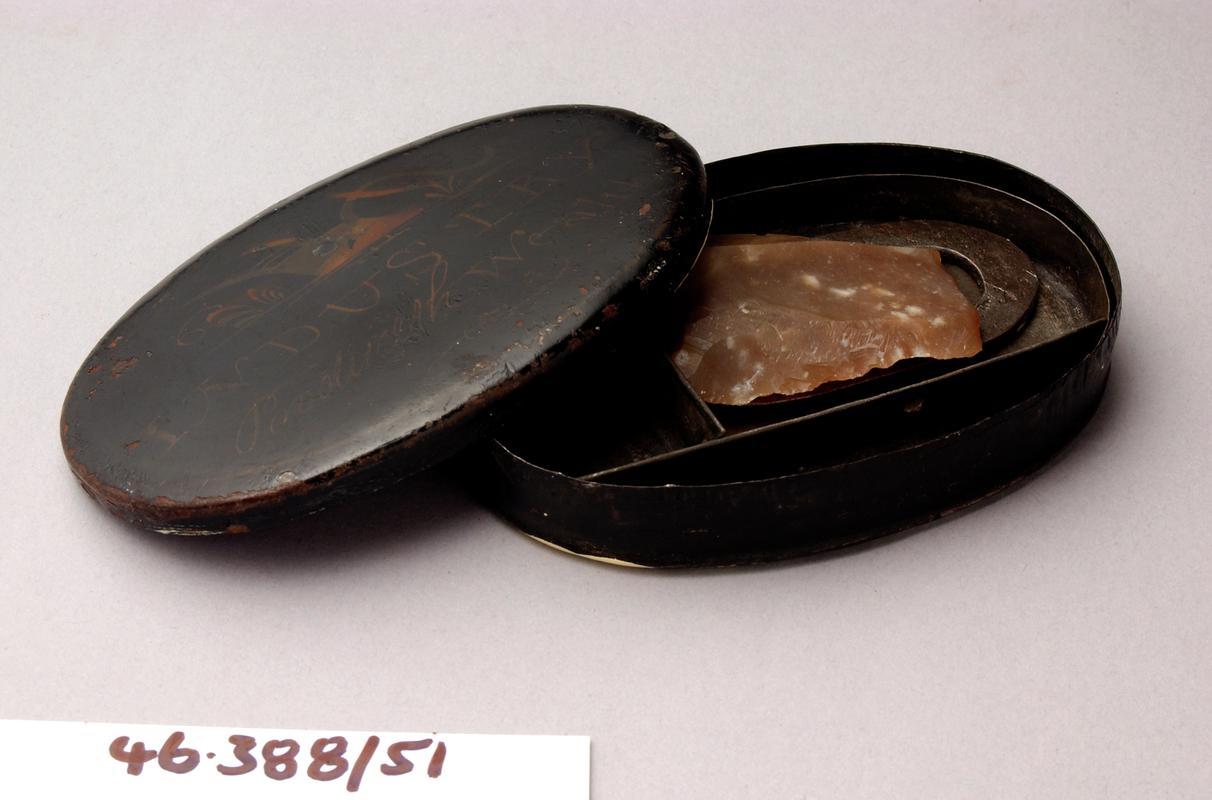 Circular brass cachou box. Lid inscribed 'HRH Prince Albert's Cachou Aromatise'. Bust of Prince Albert on base.