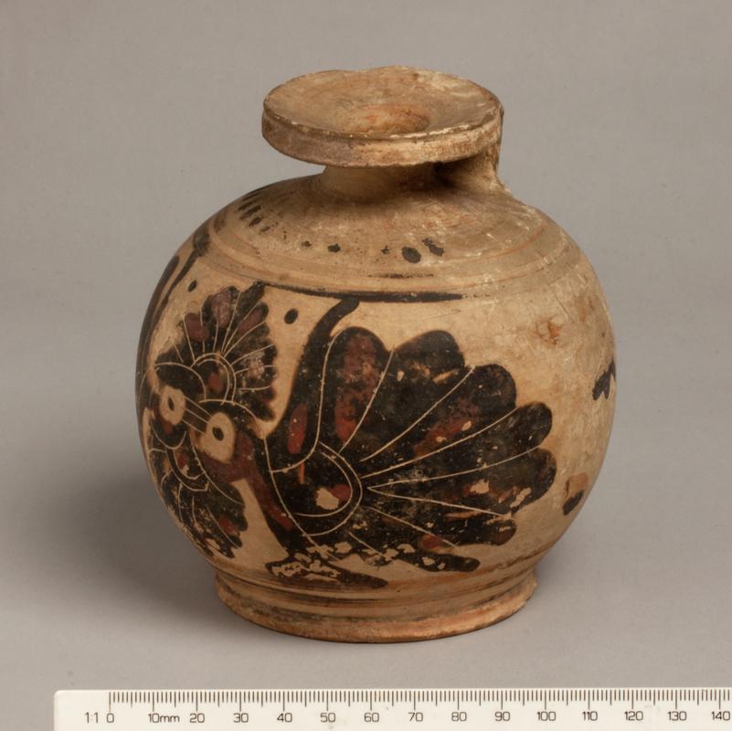 pottery fragment, lid of very wide pottery vessel, lid due to curve of fragment.