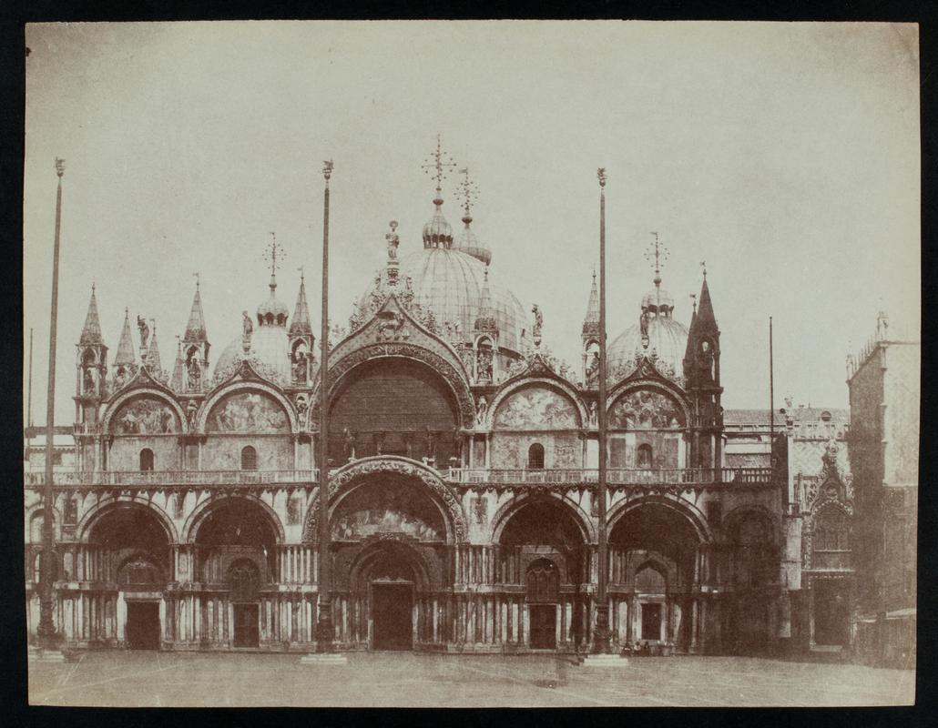 Salted paper print. Beach with rocks in foreground and cliffs on either side.