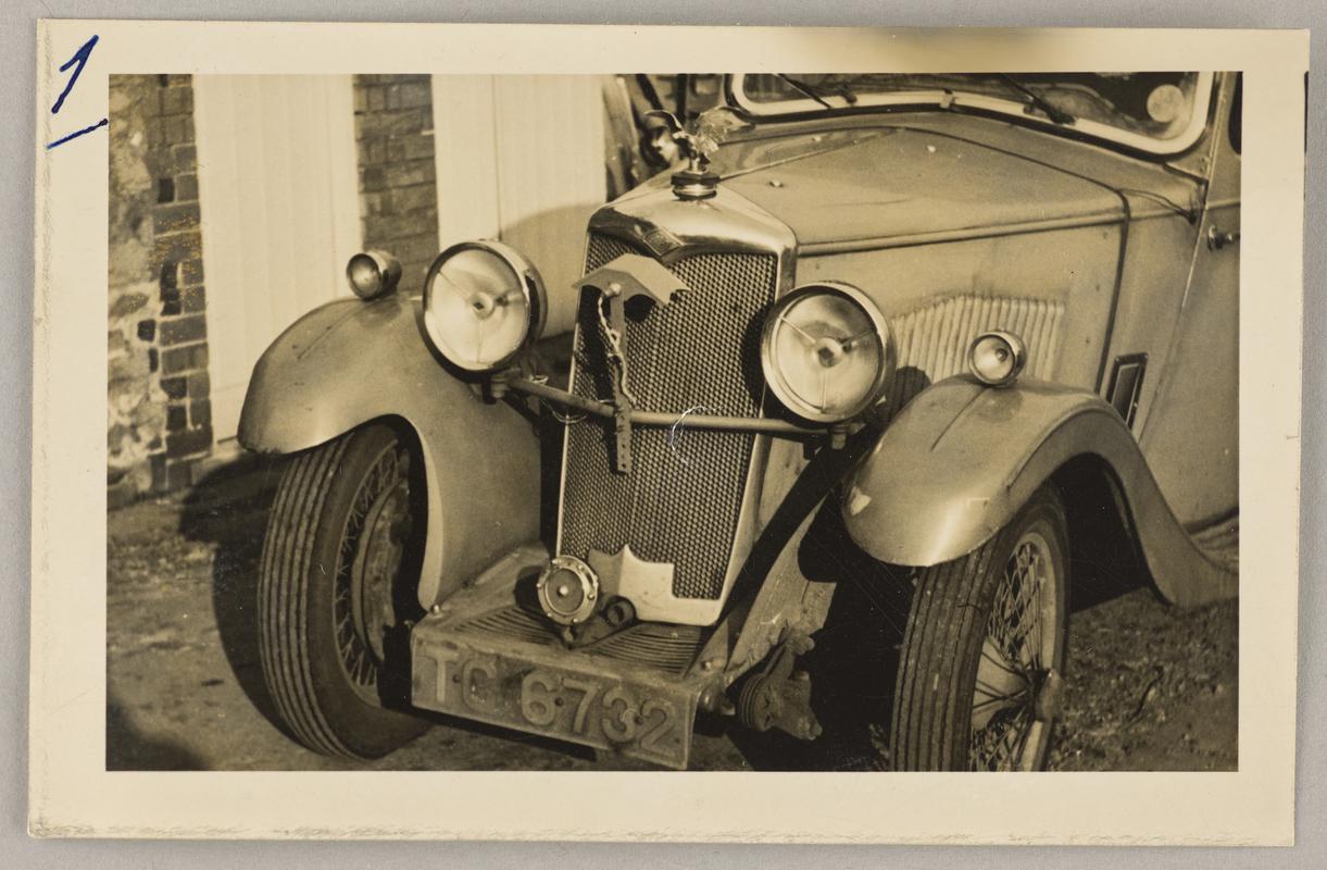 Black and white photograph. H. North (donor's father) with crowd outside Cardiff Castle.