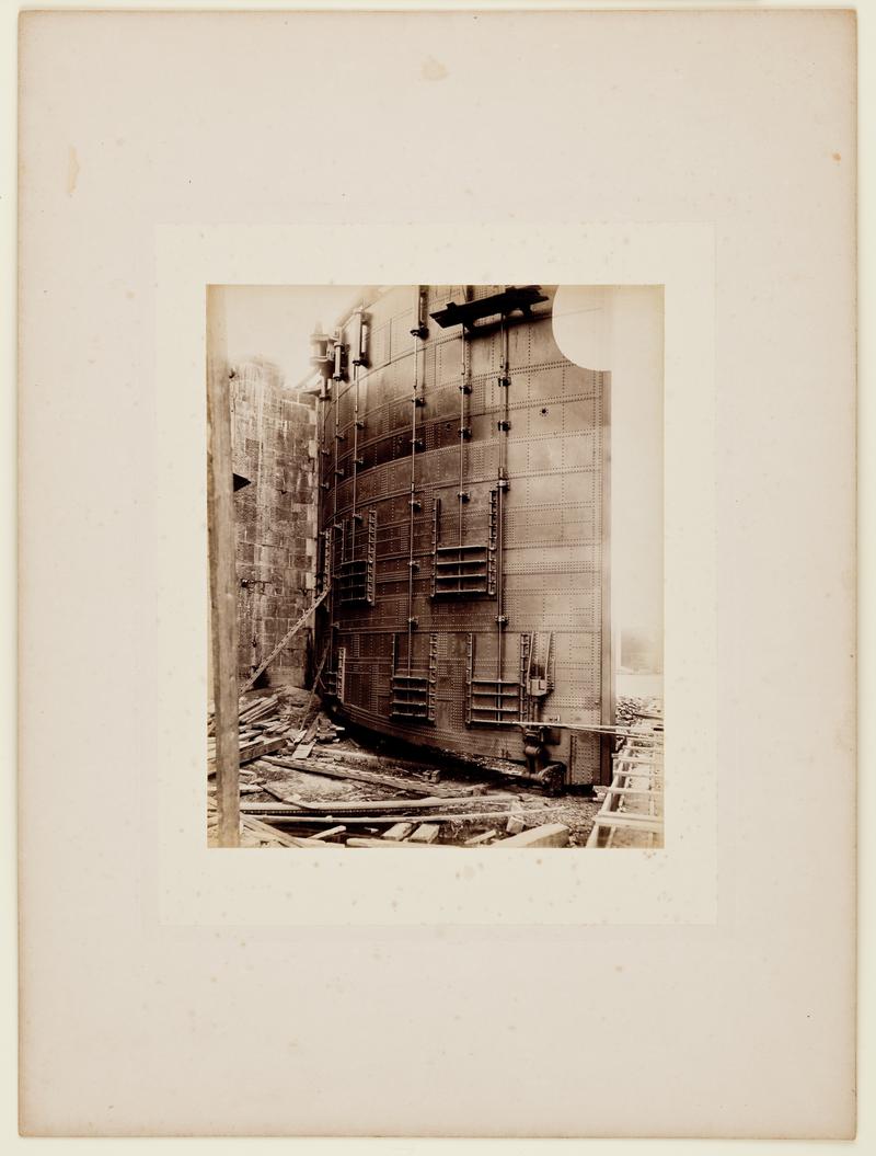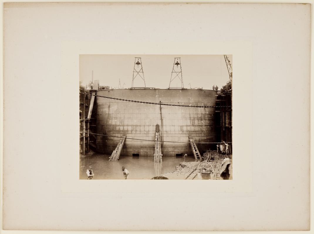 Construction of Barry No. 1 Dock. Coal hoist nearing completion. Mounted on card.