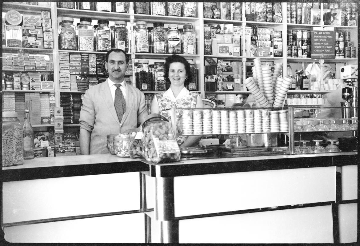 Photograph of internees on the Isle of Man with musical instruments, about 1940-41. The photograph features (amongst others): Domenico Belli (Maesteg), Joe Betosi (Swansea), Joe Servini (Aberdare), Jack Malvisi (Cardiff), Fred Servini (Aberdare), Andrew Conti (Port Talbot), Vic Gambarini (Porth), Luigi Rabaiotti (Port Talbot), Domenico Gambarini (Porth), and Aldo Servini (Aberdare).