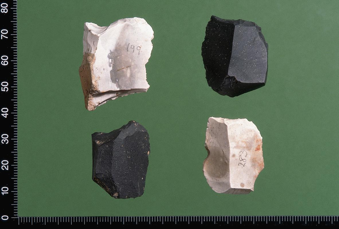 Dihedral straight burin with no patination, direct scalar retouch and an absent platform.