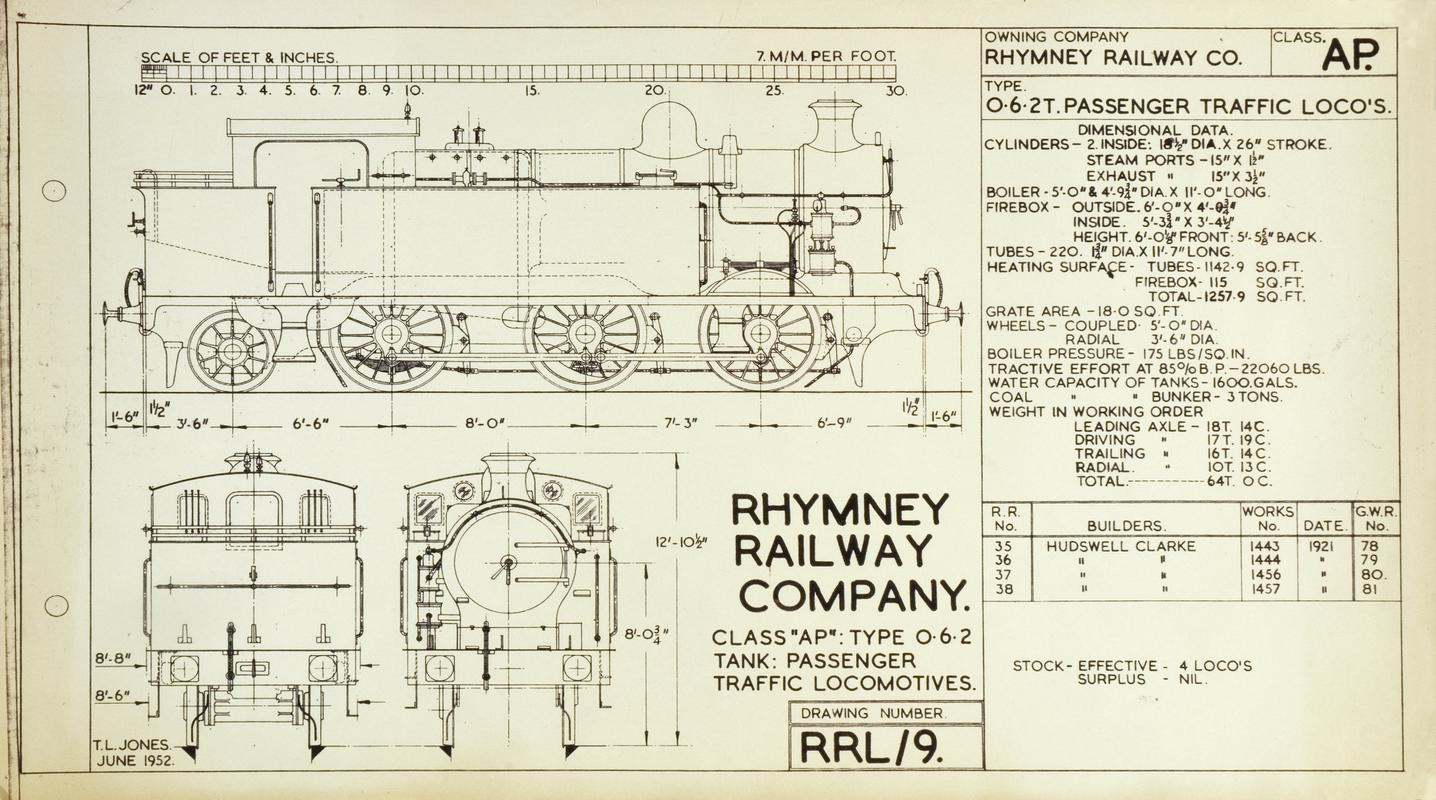 Technical drawing for Class AR: Type 0.6.2T Mineral traffic locomotive. Drawing number RRL/7 Ref.60.239.