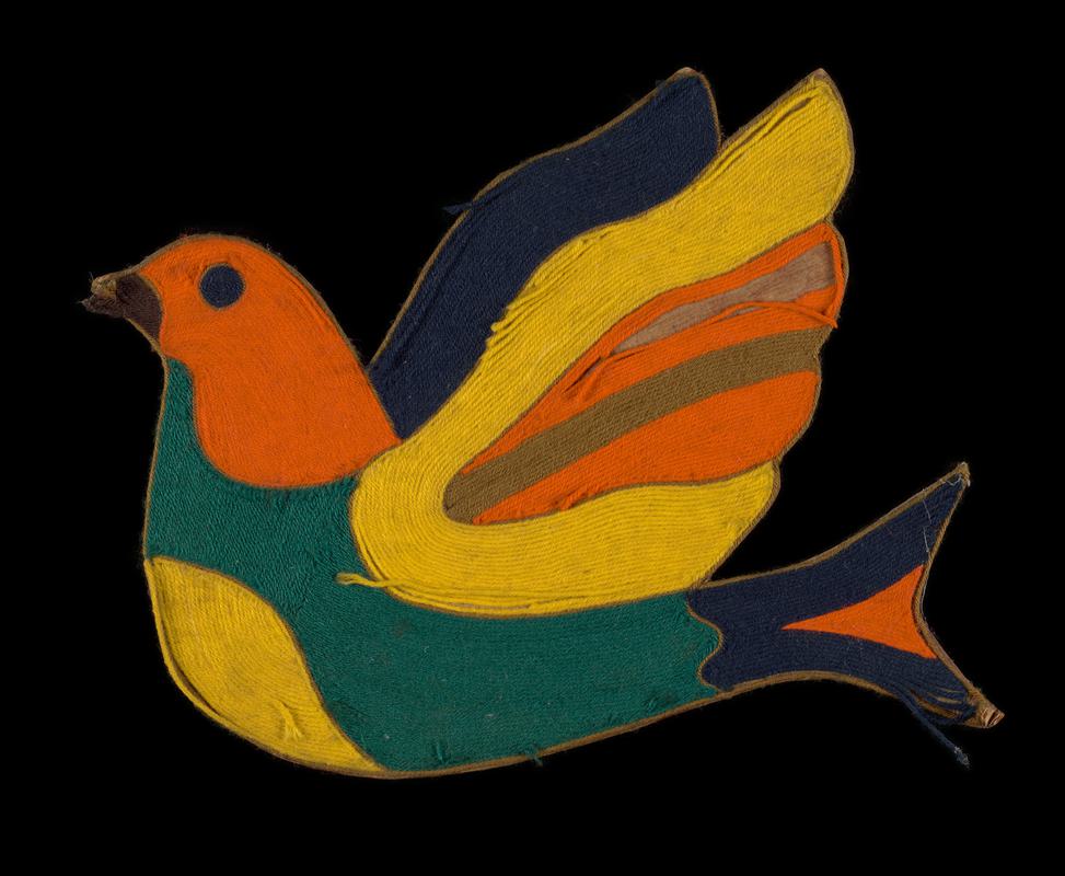 Small embroidered sampler (referred to as a 'mini protest banner') made at a workshop led by Sarah Corbett, founder of the Craftivist Collective. The workshop, held at St Fagans: National History Museum in June 2012, was organised to coincide with Refugee Week and the Refugee House exhibition.
