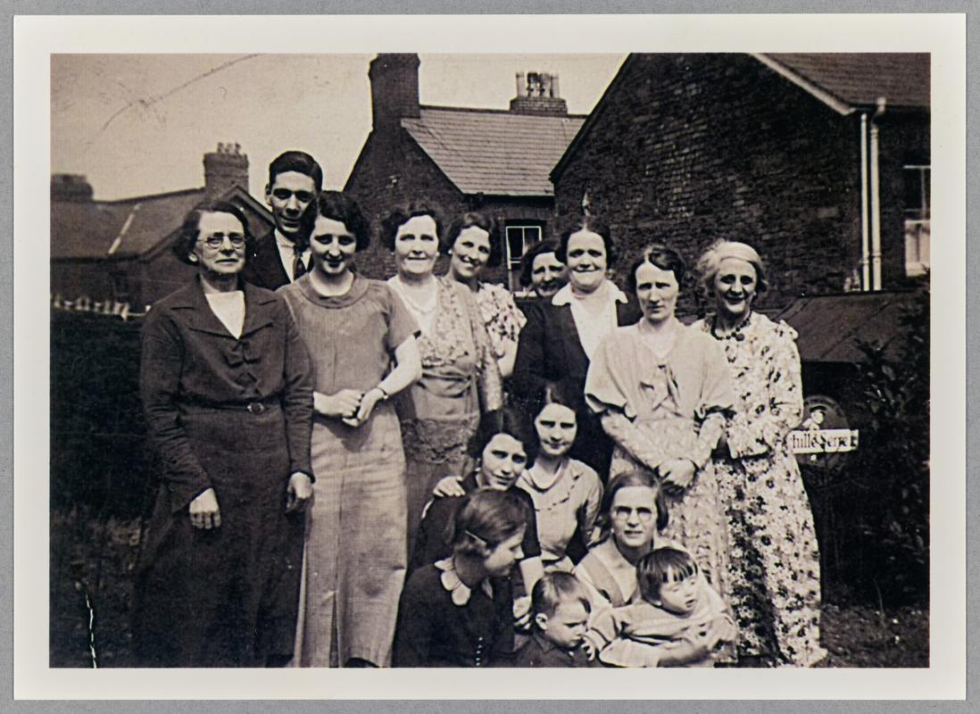 Photograph showing family group at Armon and Ceridwen wedding, 29 April 1935.