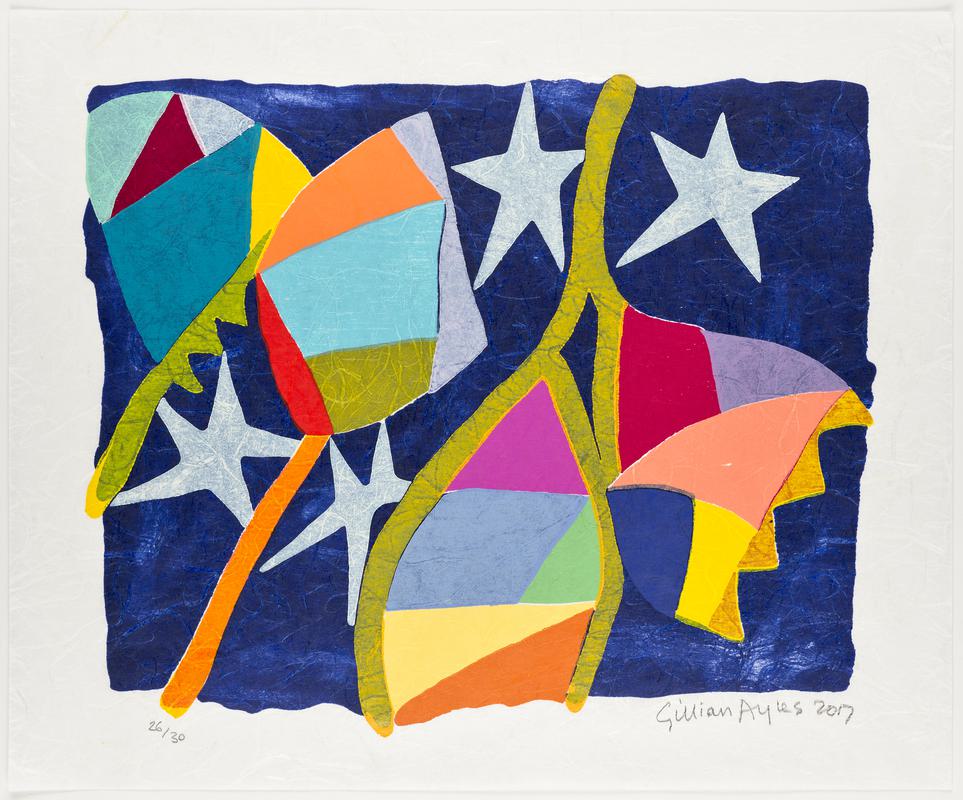 Roedd Gillian Ayres ymhlith artistiaid haniaethol pwysicaf ei chenhedlaeth ym Mhrydain, ac yn athrawes celf ddylanwadol. Ym 1981, symudodd i ogledd Cymru i roi ei holl amser i'w chrefft. Yn 2017, cynhaliodd Amgueddfa Cymru arddangosfa fawr o'i gwaith (Gillian Ayres yng Nghymru: Stori heb ei Hadrodd) gan lenwi orielau'r Adain Orllewinol gyda'i phaentiadau mawr lliwgar. Mae'r gwaith collage ac olew dienw yma yn enghraifft brin o'i gweithiau ar bapur o ddechrau'r 1960au – dinistriodd lawer ohonynt yn ddiweddarach. Mae'r collage yn cynnwys toriadau o atgynhyrchiad o'i gwaith Lure, paentiad o 1963 o gasgliad Cyngor y Celfyddydau ac a fenthycwyd i Amgueddfa Cymru ar gyfer yr arddangosfa.