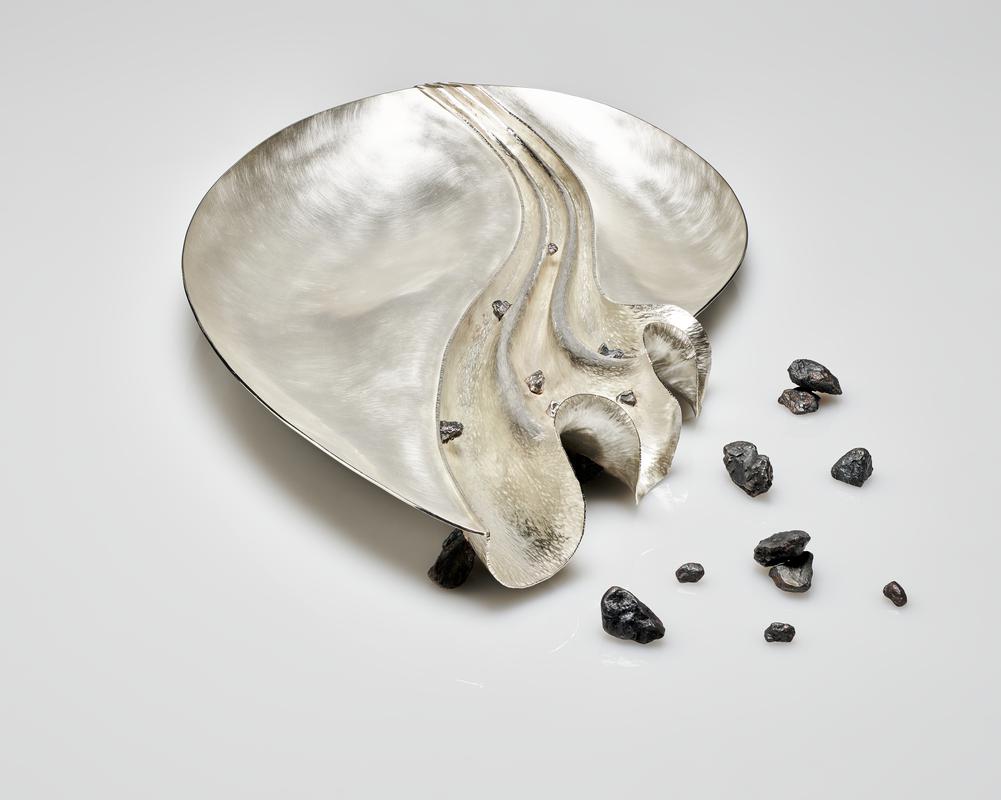 White metal medal affixed to the centre of a roughly triangular ?onyx plaque, on the reverse are three black, circular felt pads, the box is of blue cardboard lined in the interior base with a deep red velvet, two gold coloured wires secure the award in place; the medal is stamped with the head and shoulders of a cloaked man, the ?onyx plaque is light green in colour.
