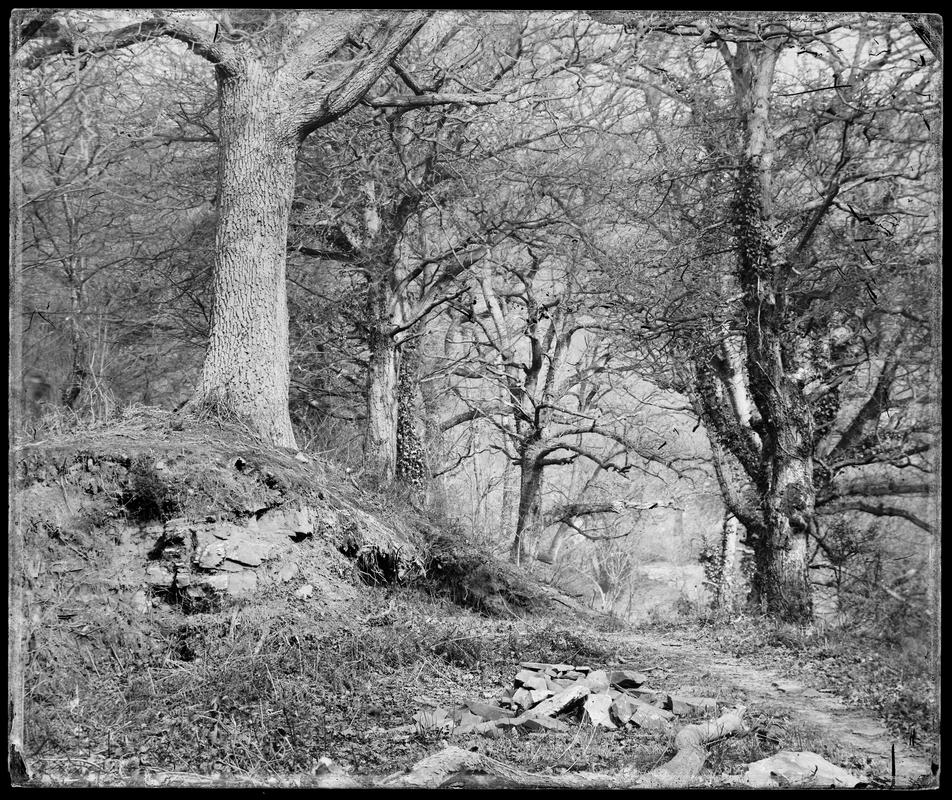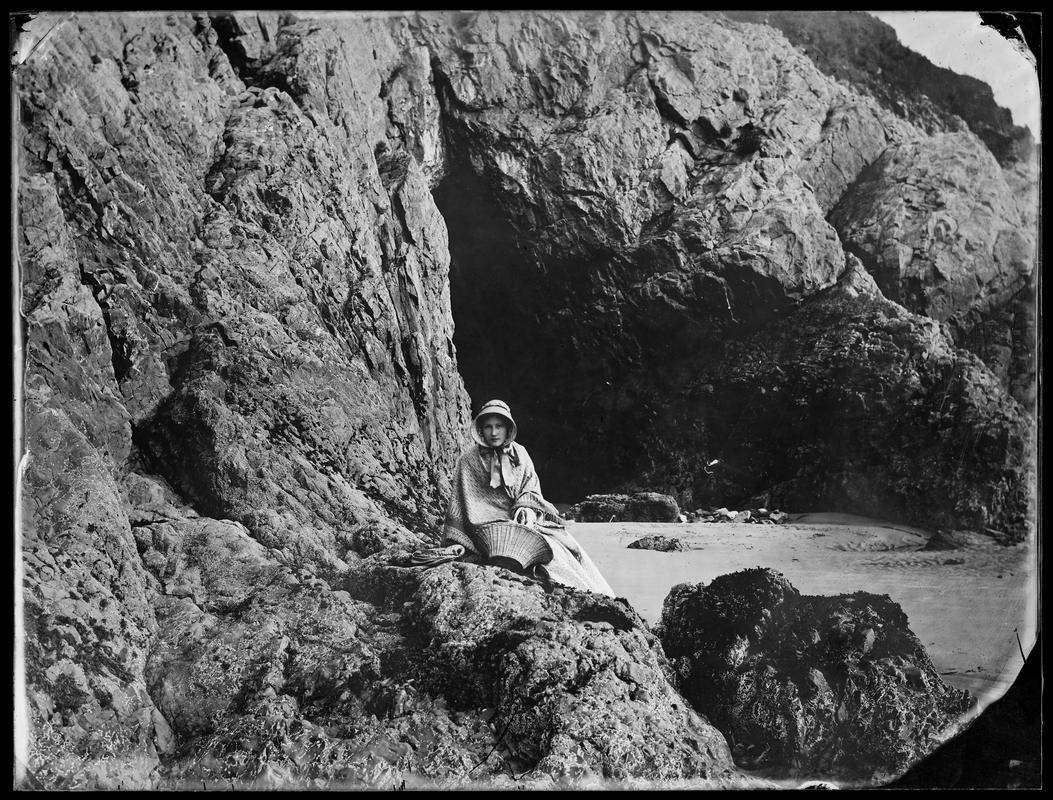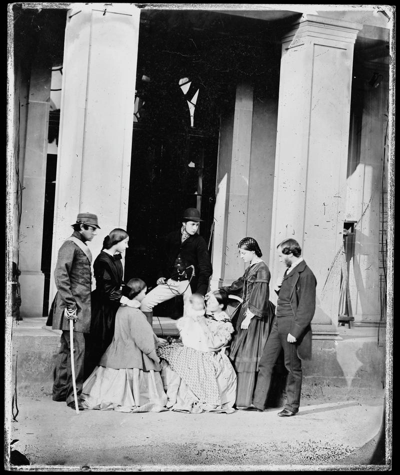 Little boy in sailor outfit leaning against a pillar in Penllergare porch.