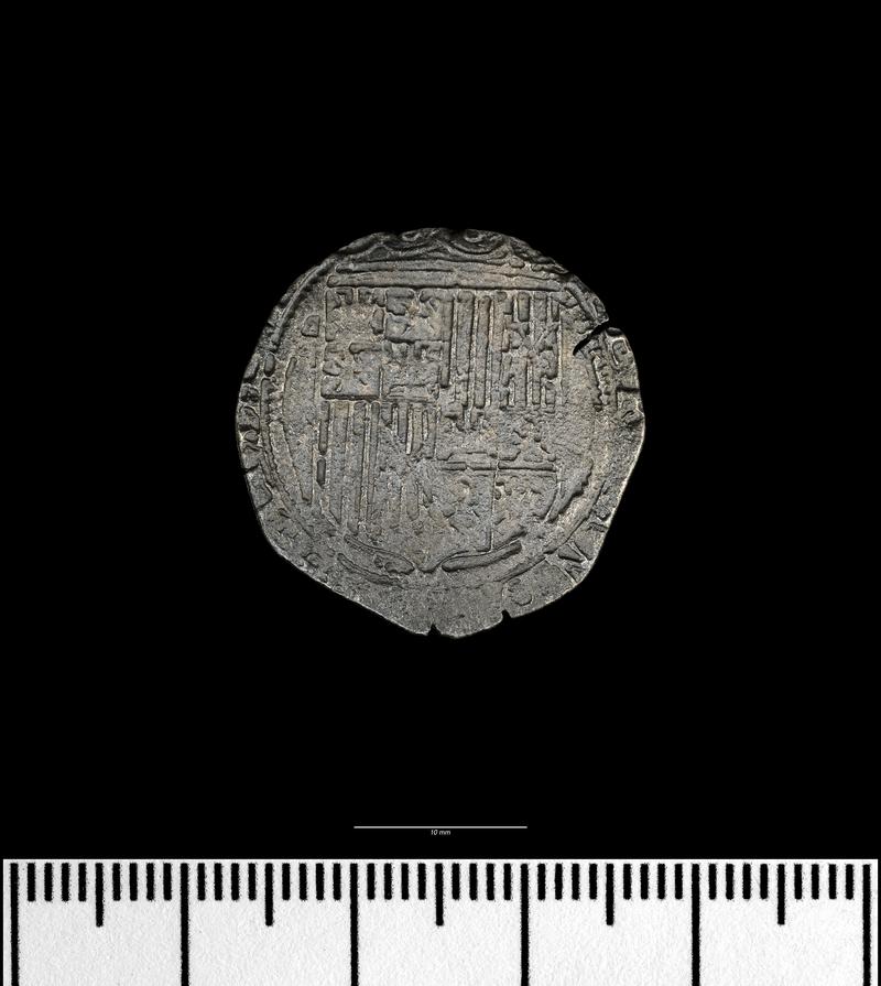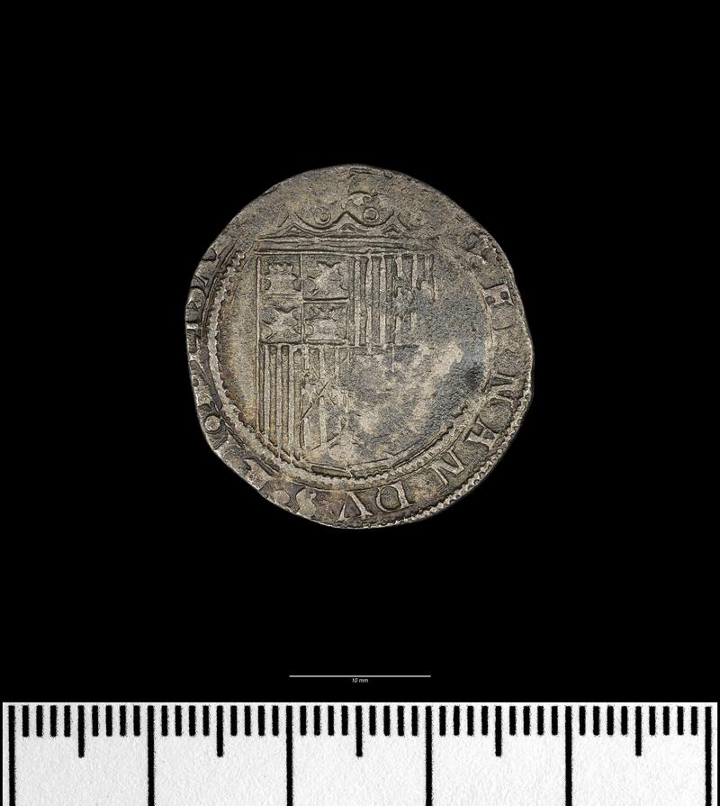 This coin is part of a collection of coins and artefacts associated with the Ann Francis shipwreck (1583).
