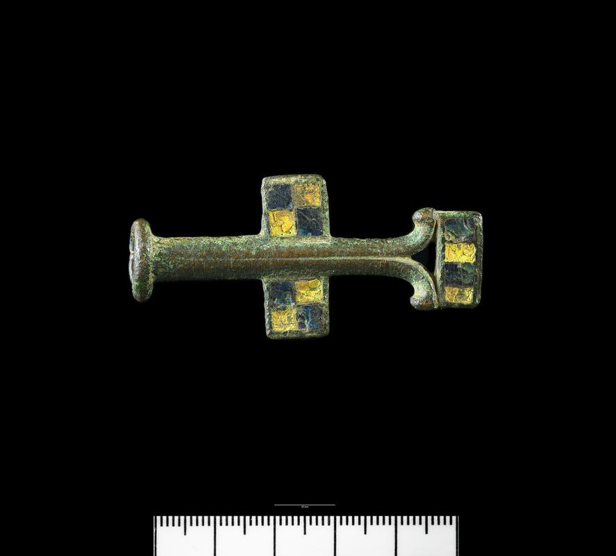 Stylized horse's head with lentinode eyes, on the remains of a slightly curved plate (18 by 14 mm)
