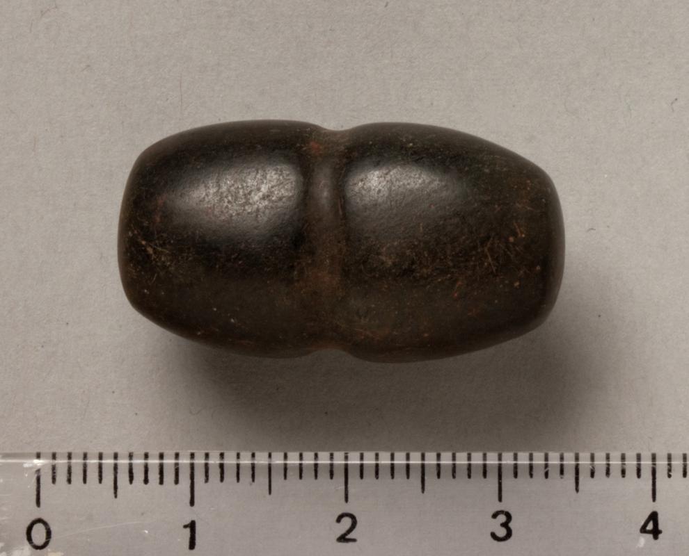 Bola stone with a tapering form and ground waist. Inca bola stones, from Peru. According to descriptions of the use of such weapons in hunting, each weapon consisted of two to five bola stones wrapped with rawhide strips, and then fastened together in the middle by cords.
