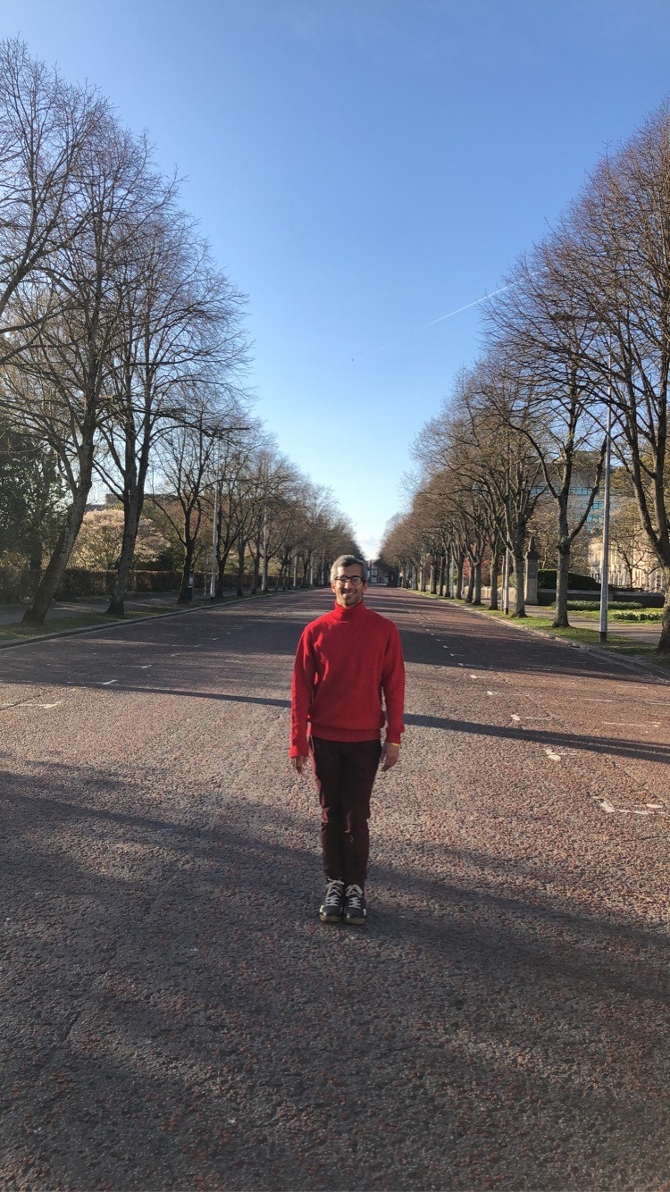 Textile artist and teacher, Haf Weighton, standing in front of an embroidered tablecloth she made with refugees and asylum seekers at Oasis Cardiff – a charity founded in 2008 that aims to help refugees and asylum seekers. The photograph was taken at St Fagans National Museum of History, 9 September 2022.