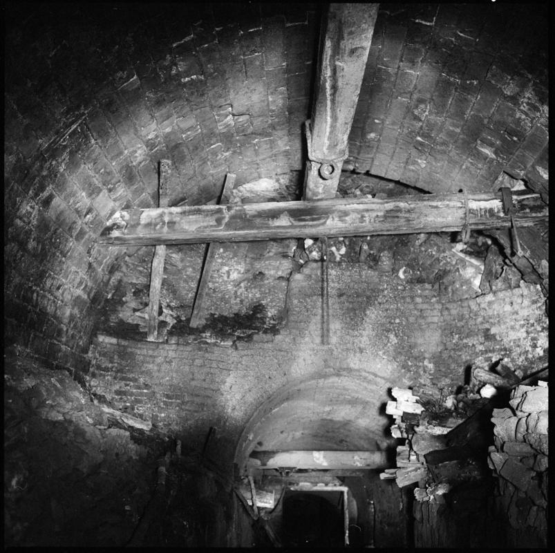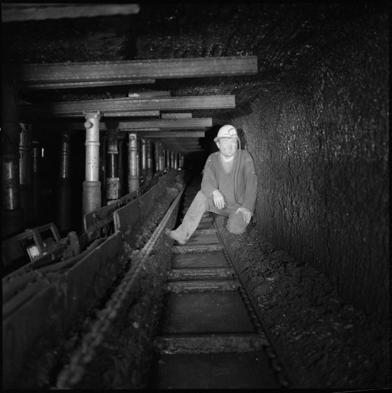 Negatif ffilm du a gwyn yn dangos gosod ffas lo newydd, gwythien Garw, Glofa Blaenserchan.