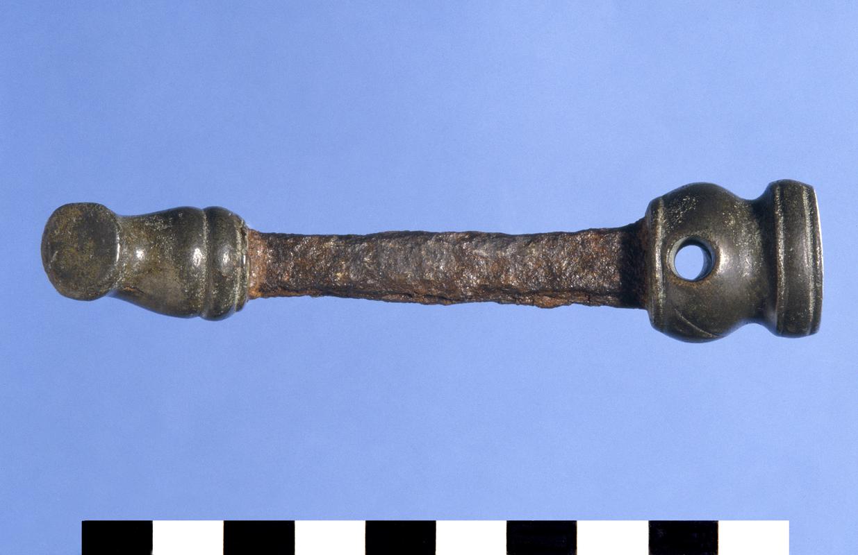 Nodiadau: Found during the construction of an airfield at RAF Station Valley. Some certainly, the rest probably, from a wet meadow which formed the margin of Llyn Cerrig Bach. The exact depth below the grassy surface at which the objects were deposited is not known. The bog was excavated to a maximum depth of 20 feet. A few objects were found on the spot, after the peaty deposit had been won from the boggy margin of the lake. The rest, with the exception of 44.32/58, were found on that portion of the adjacent aerodrome on which the peat from this site had been spread. Animal bones were associated with the deposit and many metal objects were stained with vivianite.