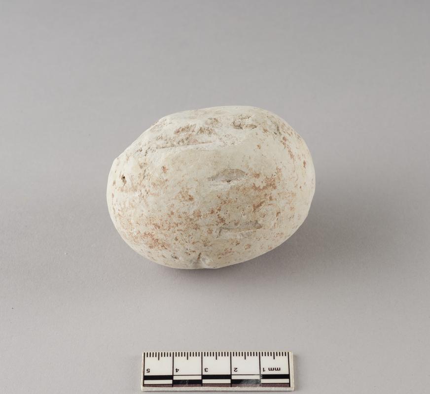 Possible ballista ball, or similar. The surface is predominantly smooth, with signs of damage (wear, chips and cracks).
