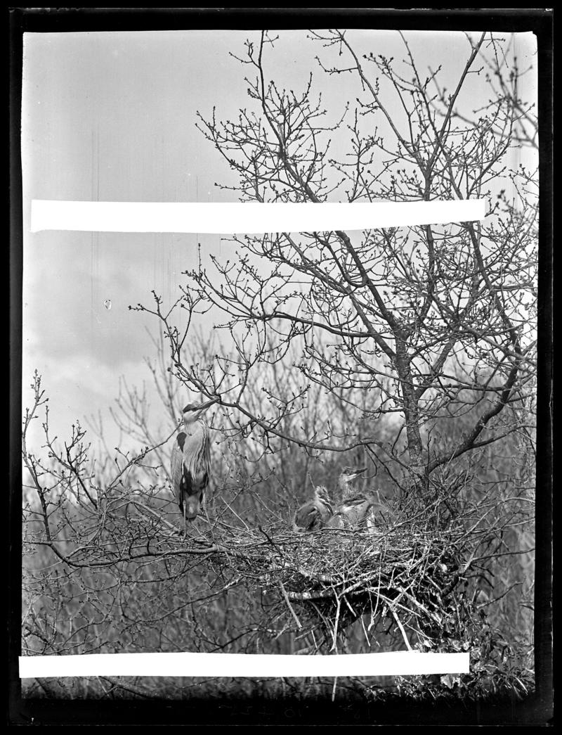 A Grey Heron (Ardea cinerea) nest, Wild Park, Roath, Cardiff. Photographed 1 April, 1911. Exposed at f/22 (SR).