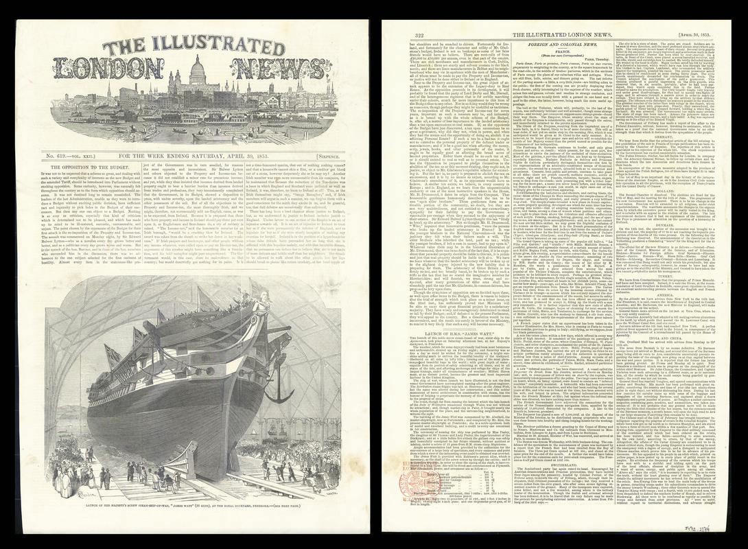 Print "The Wreck of the ROYAL CHARTER on the Coast of Angelsey, Near Moelfre, Five Miles from Point Lynas Lighthouse". Page from The Illustrated London News supplement November 5th 1859.