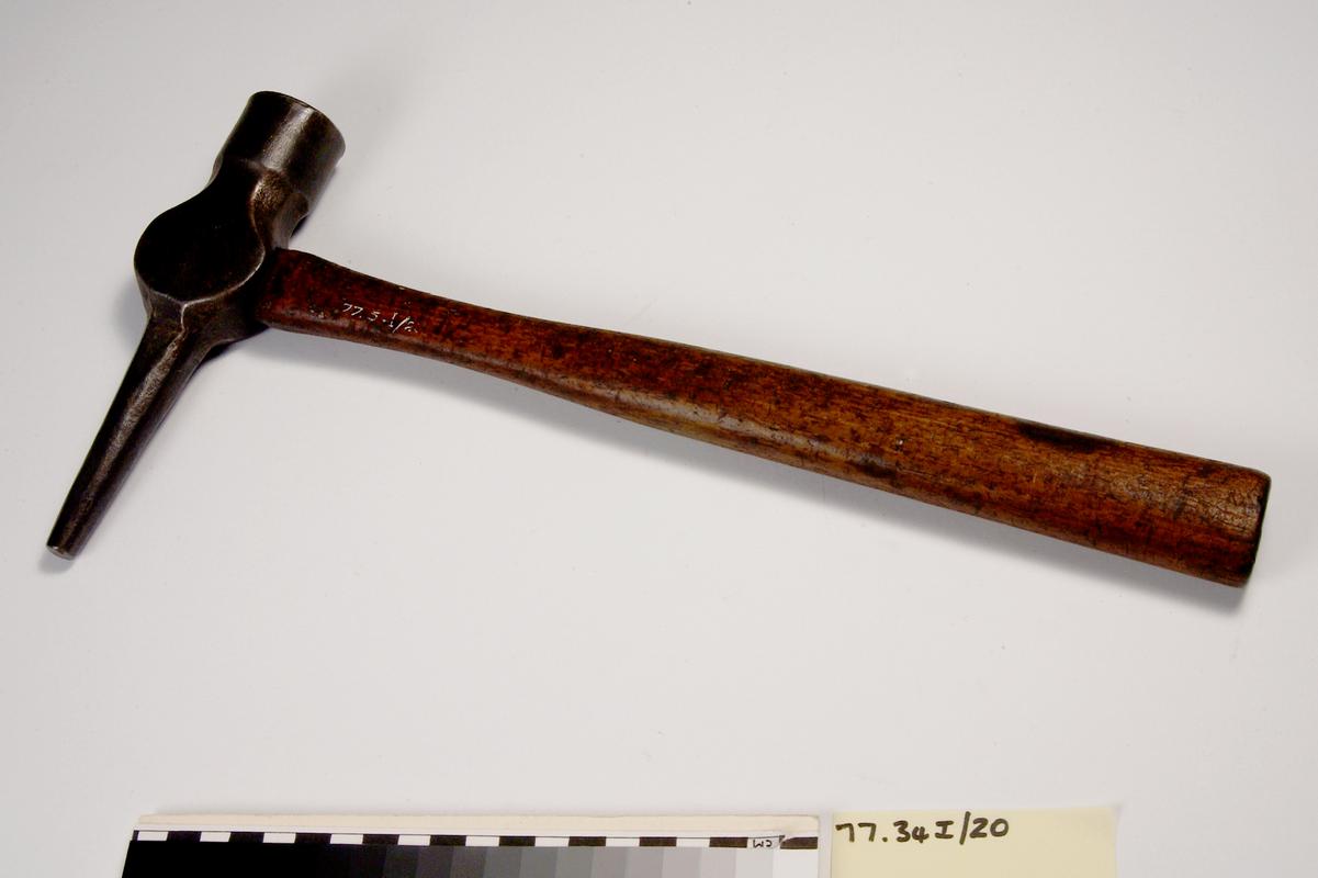 Hammer head worked into more of a point at one end. Both ends appear to have metal lips/caps. Probably not used underground.