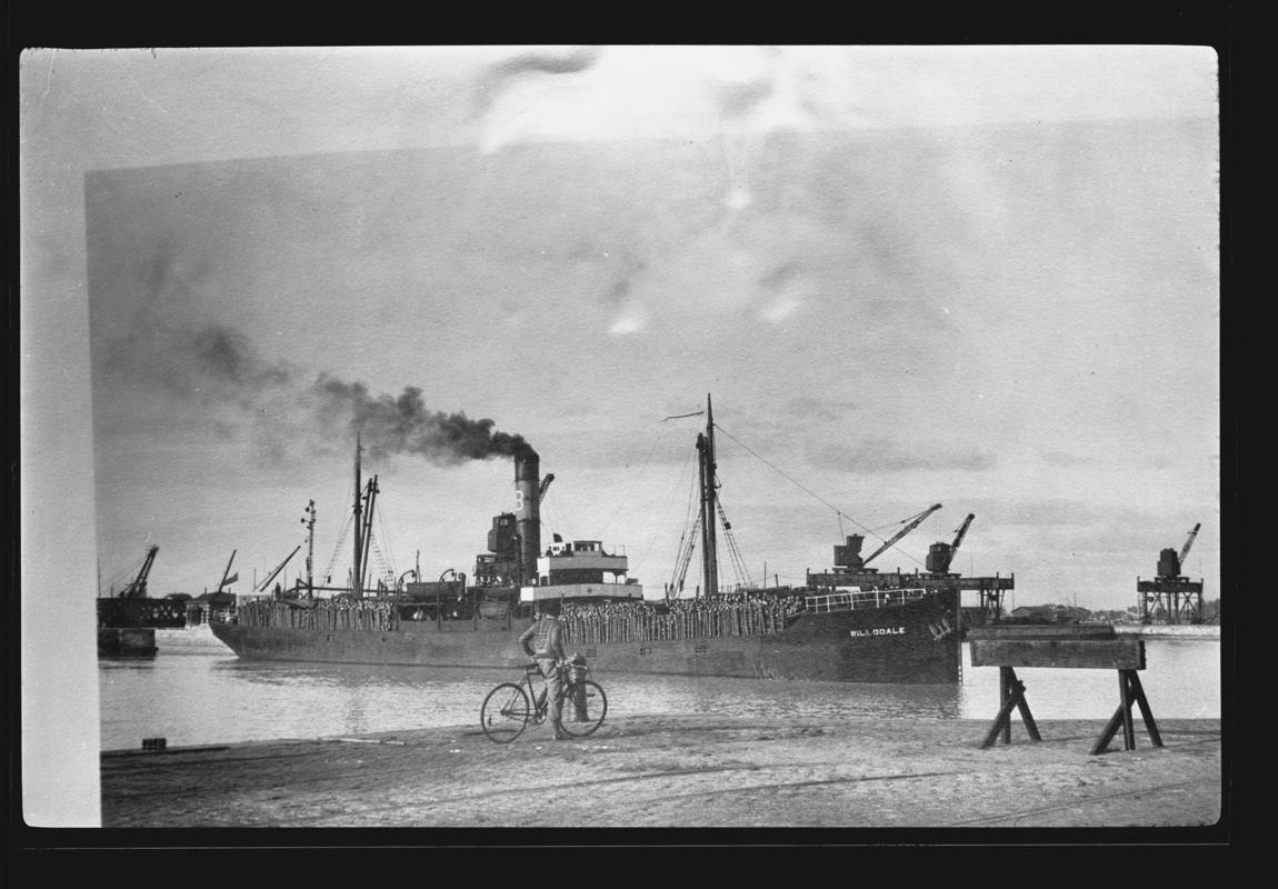 3/4 port stern view of S.S. DALEMOOR at Cardiff Docks, c,1936.
