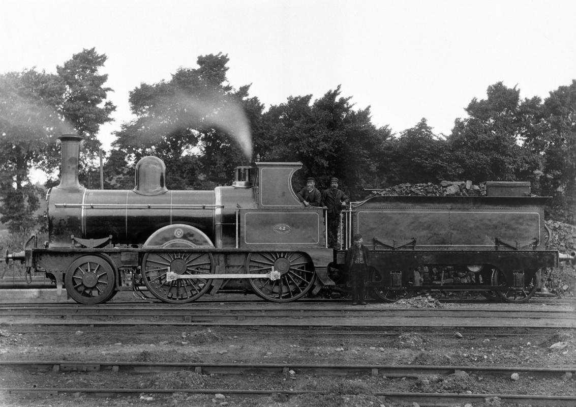 View of two men on footplate of Cambrian Railways locomotive No 37 "Mountaineer" 0-4-05T.