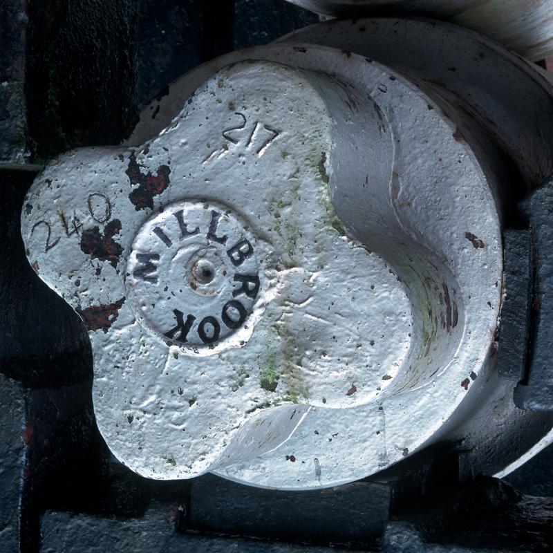 Fluted street lamp with one ladder rest missing and no head. Painted green but badly flaking. Same pattern as 2000.72/2 and /3 and Ref 14.13.