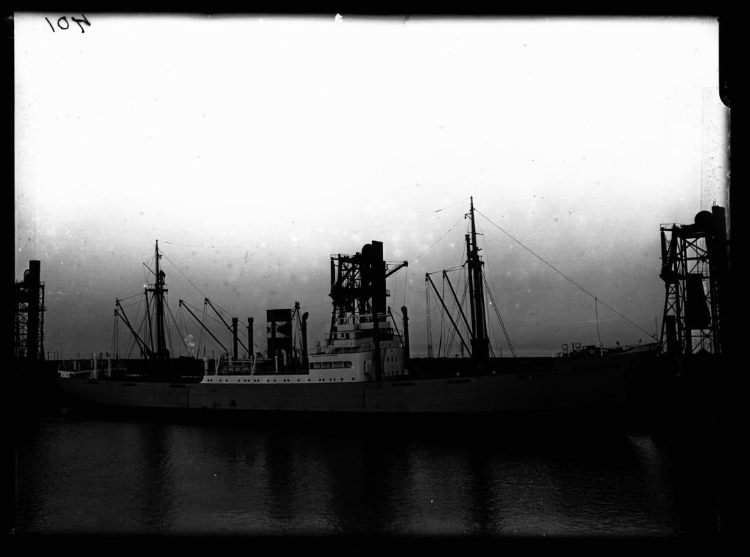 S.S. QUEEN ELIZABETH turning, preparing to depart Southampton Docks.