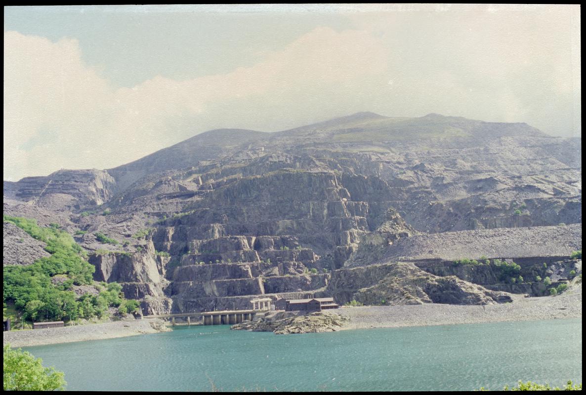 Colour slide showing Llanberis works, waterwheel, 1970s