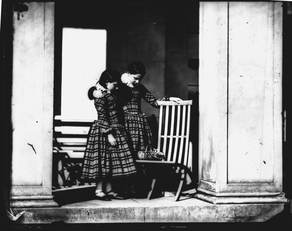 Collodion glass negative showing Lewis Llewelyn Dillwyn and a girl. Taken by his sister Mary Dillwyn, widely regarded as Wales' first woman photographer.