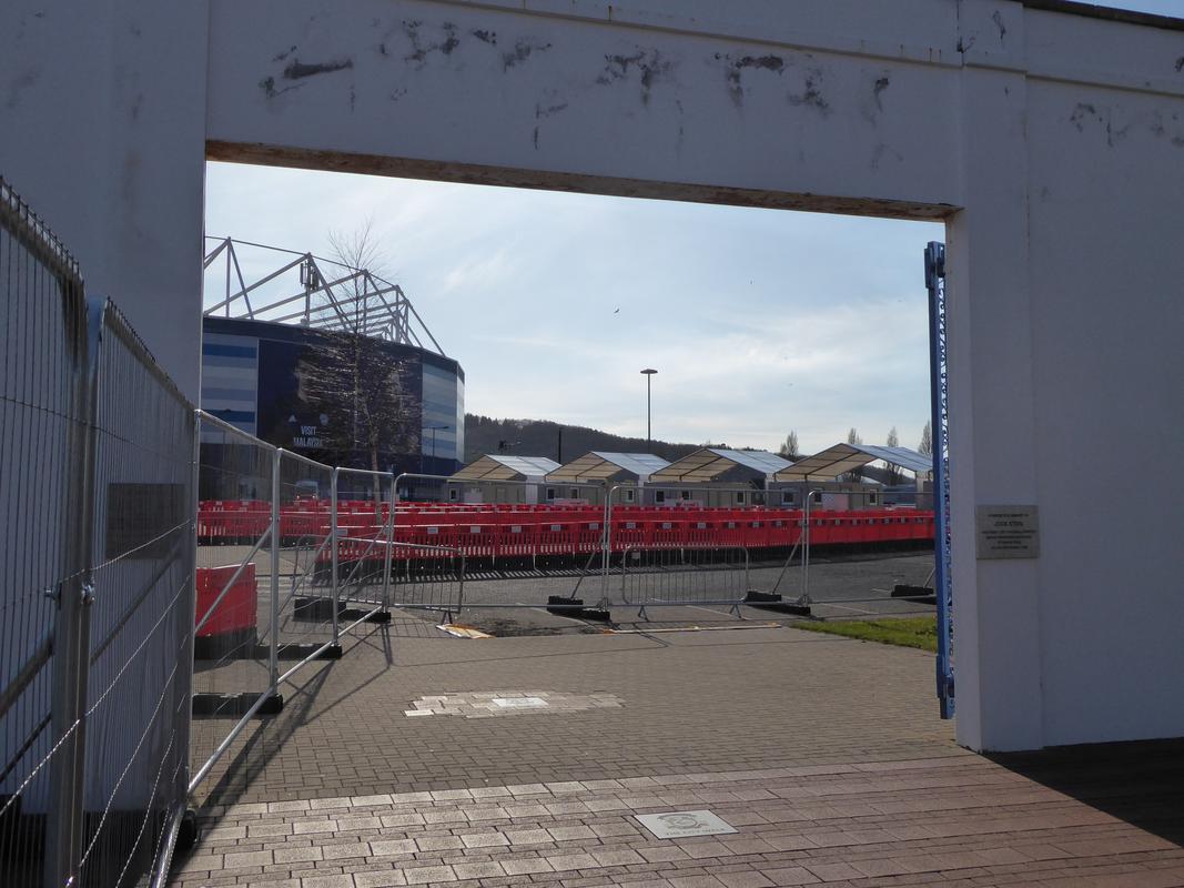 Photograph of Womanby Street, Cardiff, showing Trinity Chapel and the Horse & Groom public house, 24 March 1891.