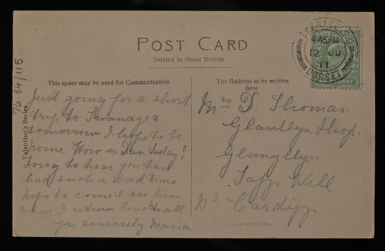 Colour postcard of "Bideford, From The Station". Sent to Miss E Parry of Newport. Postmarked 01 January 1908.
