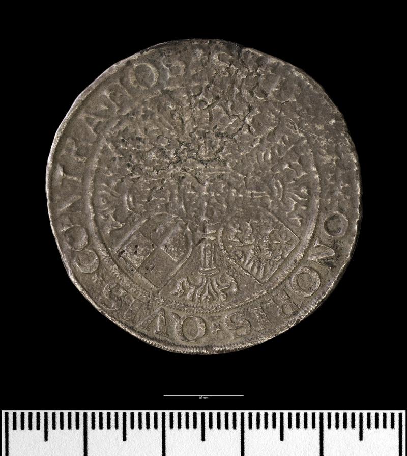 This coin is part of a collection of coins and artefacts associated with the Ann Francis shipwreck (1583)