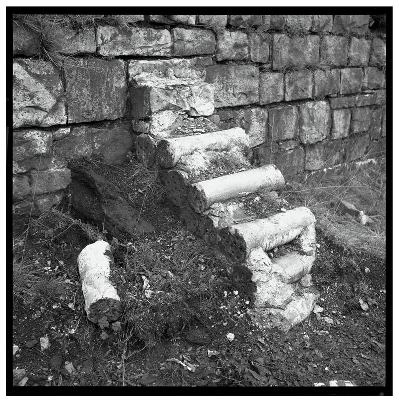 Contact sheet of six images showing general surface views of Celynen North Colliery including the exterior of the blacksmith's shop, 1975.