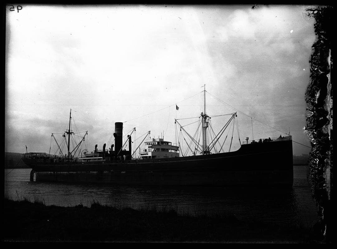 3/4 Starboard bow view of the S.S. ENA DE LARRINAGA, c. 1936