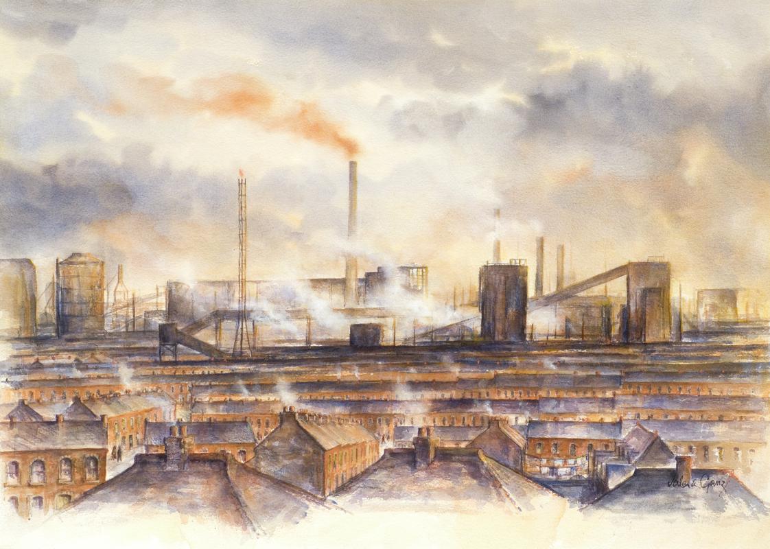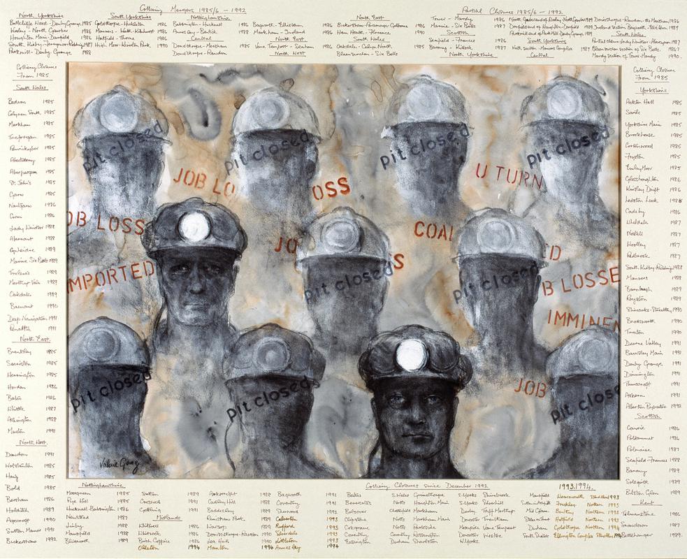 Ganz, Valerie (Valerie Ganz (1936–2015) was born near Swansea, and studied at the Swansea College of Art. During her early career she took an interest in the industrial landscape and, among other places, she worked above ground at fourteen different collieries. In 1985 she rented a house in Six Bells and, with the permission of the National Coal Board, worked underground at Six Bells Colliery to depict the miners at work. Her work was included in the ‘Mining in Art’ Exhibition at the Glynn Vivian Gallery, Swansea in 1986, alongside the works of Jack Crabtree, Nicholas Evans and Josef Herman. In 1990 she was commissioned by British Coal Opencast to produce a record of the working life in three open cast sites. During her career she worked on many different subjects around the world. Her work is included in the collections of both the National Museum of Wales and the National Library of Wales.)
