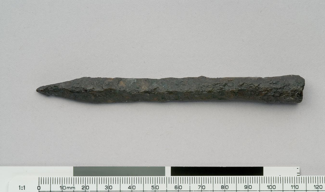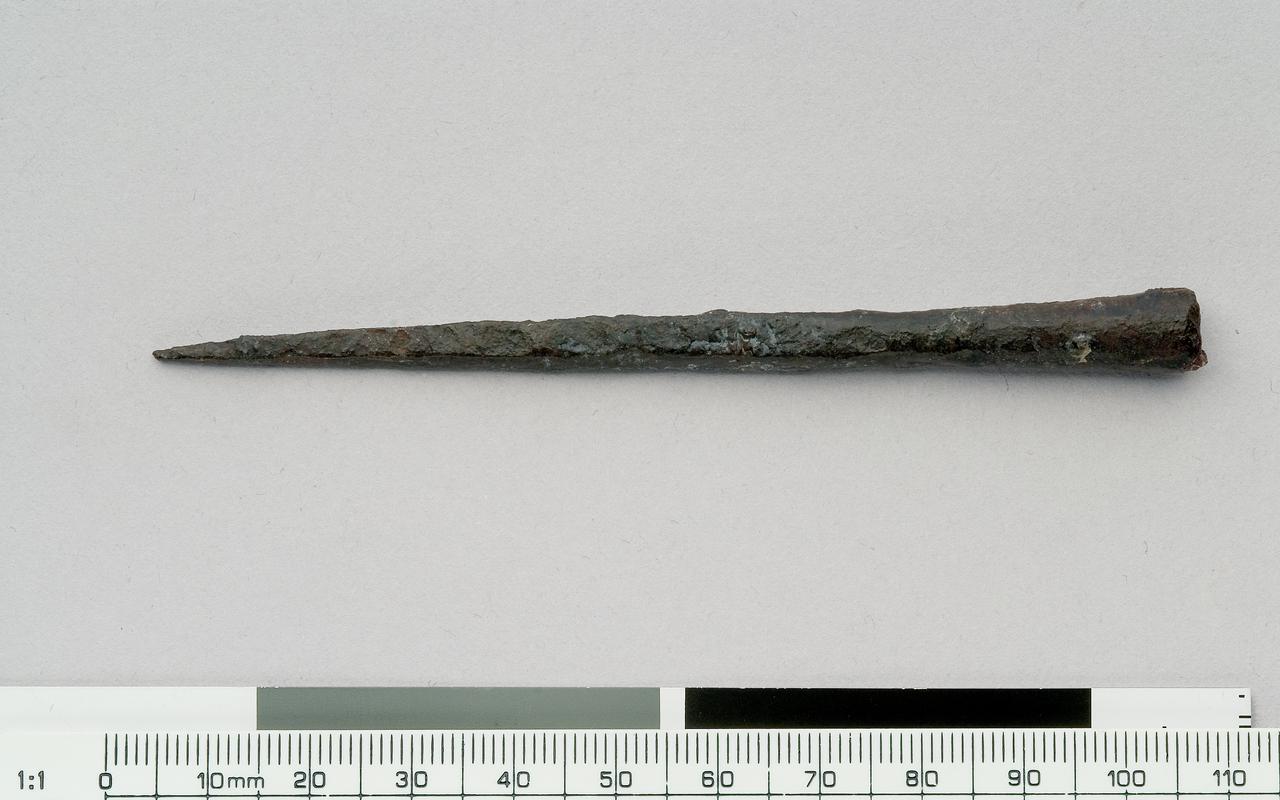 Part of collection of coins and miscellaneous objects of metal, stone, bone and pottery.