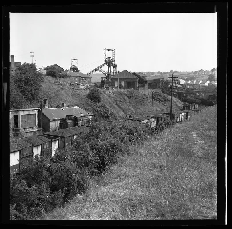 Black and white 35mm film negative showing Deep Navigation Colliery, 1970s.