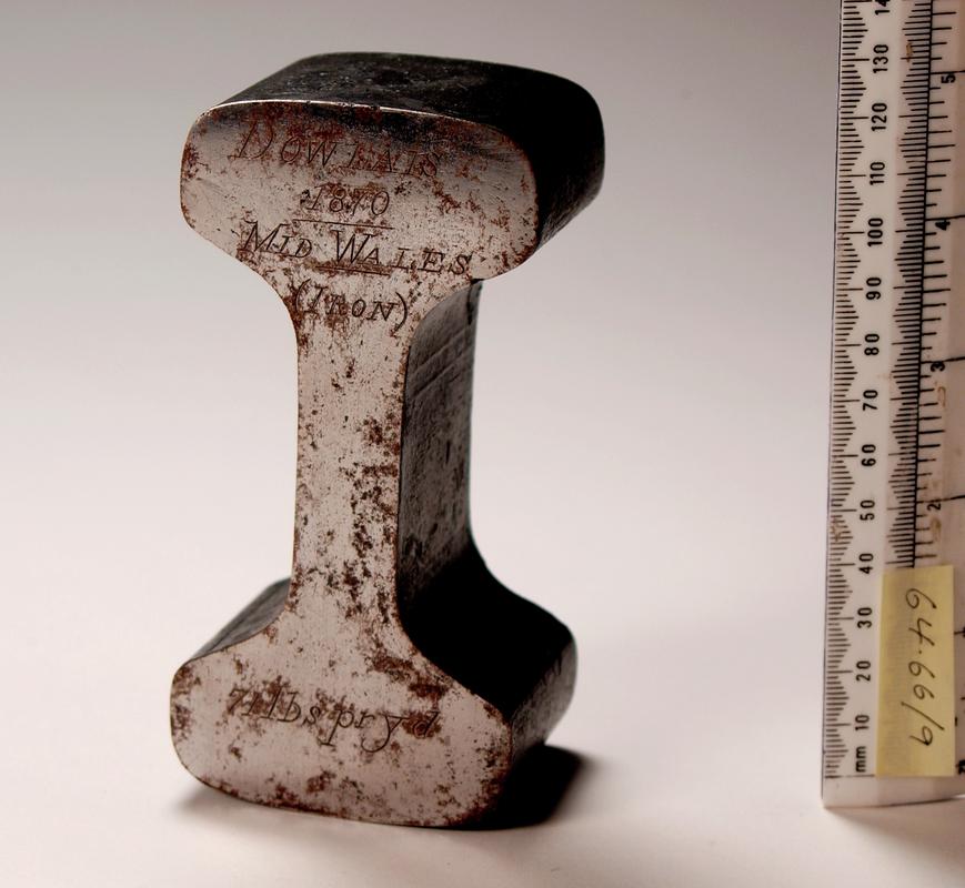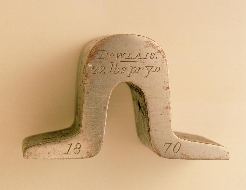 Flat bottom rail section rolled at Dowlais Works, 1868-70, with inscription.