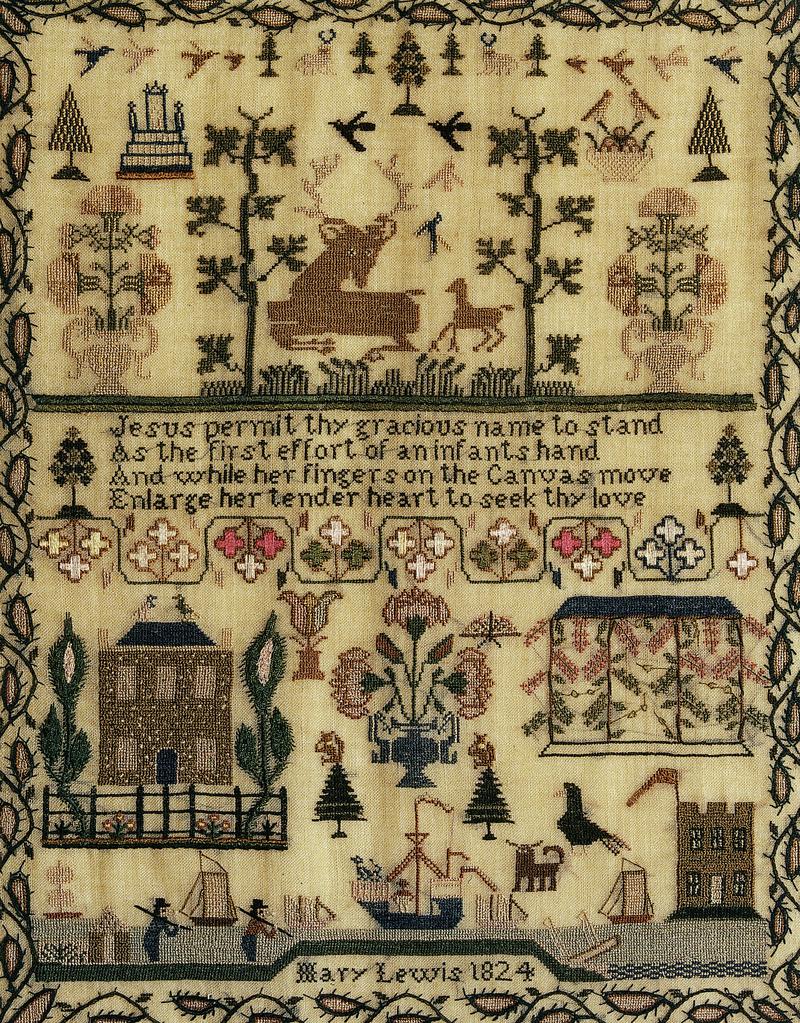 Sampler sydd ar ei hanner. Fe’i gwnaed yn Neuadd Glansevern yn y Canolbarth, 1839.