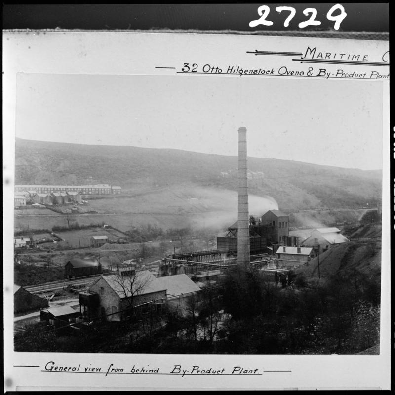 Film negative of a photograph showing a group of miners on the surface at Deep Navigation Colliery. 'Deep Navigation' is transcribed from original negative bag.