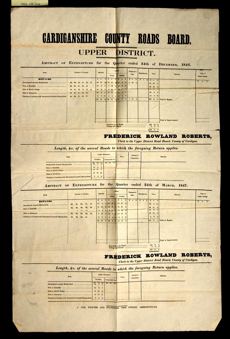 1996.231/73 (1 - 2 of 2). Brown card folder with title 'Tregaron Check. Starters from Cardiff & swansea' typed and handwritten on the front. Contains one entry form, black print on pink paper with details filled out in ink, 1938.