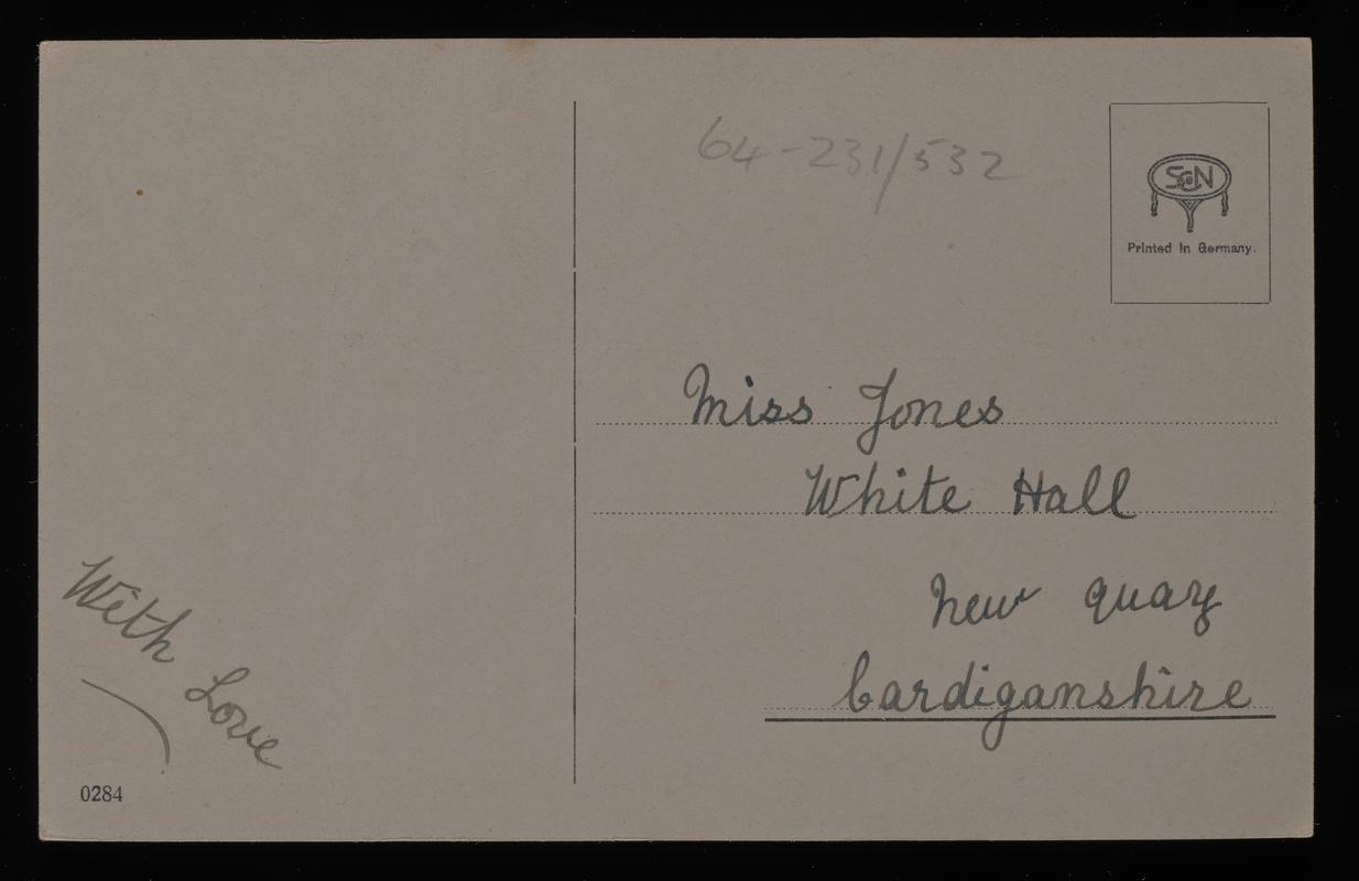 Black and white postcard of two women in Welsh costume entitled "Welsh Women At Work". Unused.