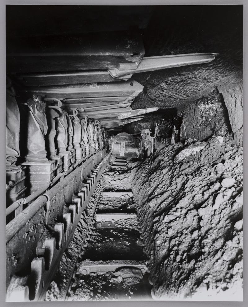 12A - showing an underground roadway. 13A - showing a conveyor belt (half the image is very feint) 14A-15A - two similar images showing an underground roadway and conveyor belt. 16A-17A - two similar images showing a chain haulage system.