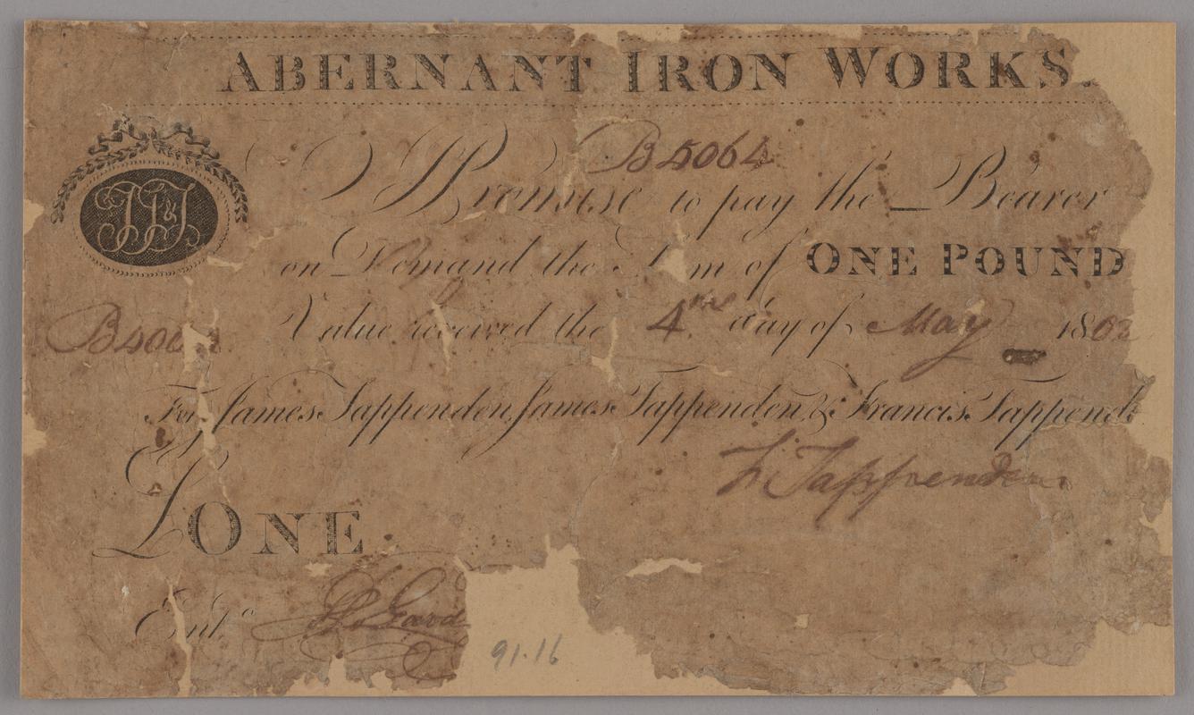 Note, photocopy of