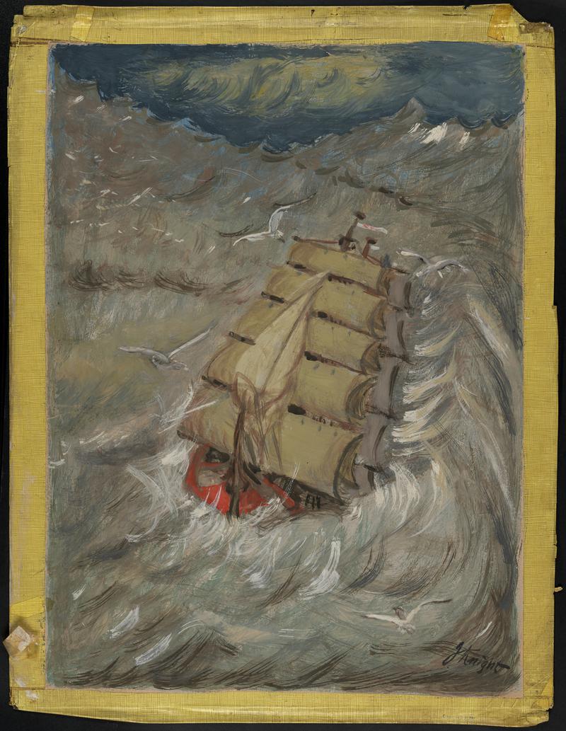 Oil painting showing a mill, waterfall and mountain at Bodhyfryd.