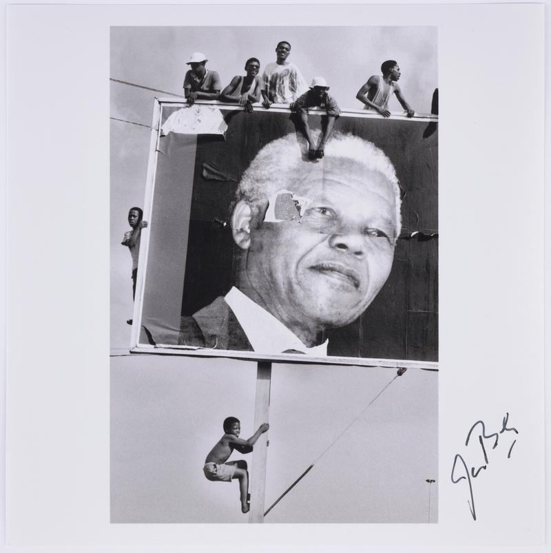Supporters climb to every vantage point whilst awaiting the arrival of Nelson Mandela. Natal, Lamontville