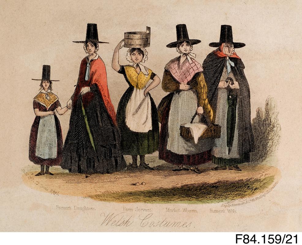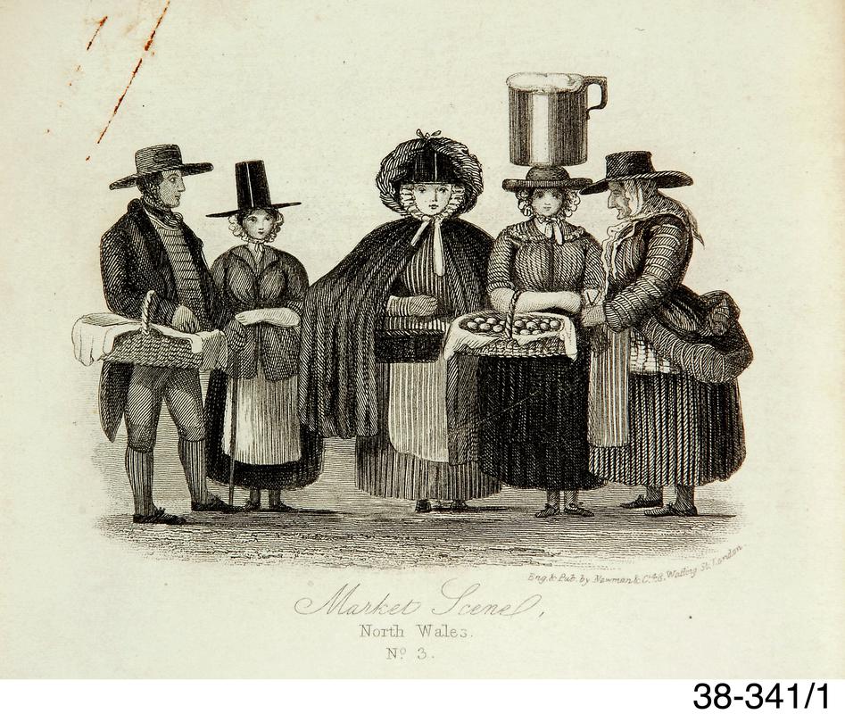 Engraving 'Welsh Costumes No.6 The Bidding'.