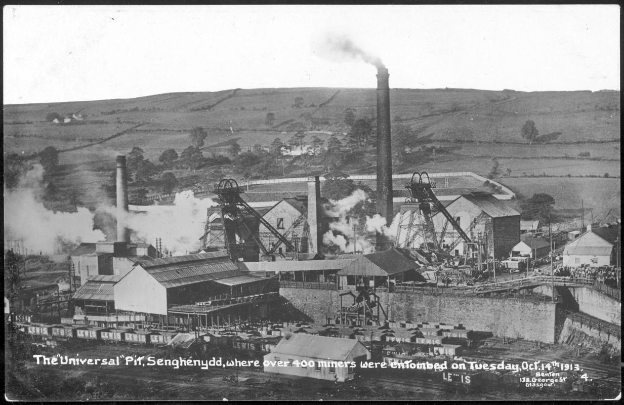 Photograph "Pit Disaster at Senghenydd. "Heroes All". A rescue party leaving the Pit after a night search". Rescue teams were used at Senghenydd for many days, searching for survivors and fighting fires which were raging underground. One of the teams is shown leaving the pit after their shift.
