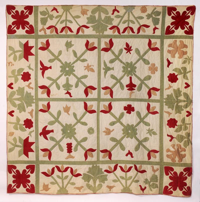 Patchwork quilt designed and made by Diana Jones of Laugharne, about 1988-1990.